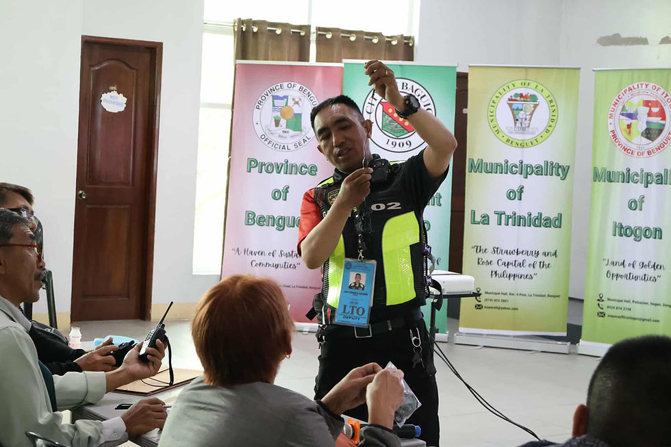 Police Executive Master Sergeant (PEMS) Ferdinand Charaychay Jr., Joey Galeon, and Leo Neil Abalos from the La Trinidad Traffic Management Section shared their expertise in the recently concluded 4-day Capability Building Training of the Metropolitan BLISTT Development Authority Traffic Auxiliary Personnel (MBLISTT DA TAP) at Gestdan Centrum, Baguio City.